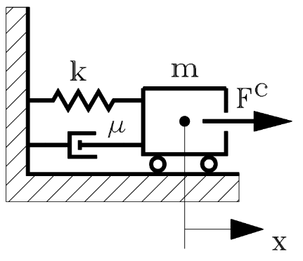 Рассматривается колебательная система с одной степенью свободы. Тело массы \(m\) соединено с неподвижным основанием посредством упругой пружины. Движение тела происходит в среде с вязким сопротивлением под действием внешней силы (рис. 1.1).