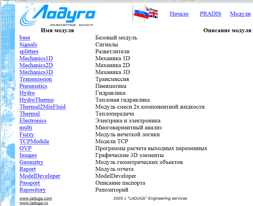 Справка → Каталог модулей |