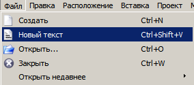 Файл → Новый текст |