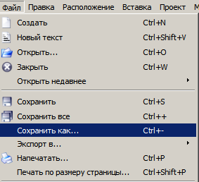Файл → Сохранить как… |