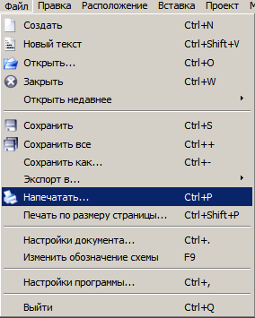 Файл → Напечатать |