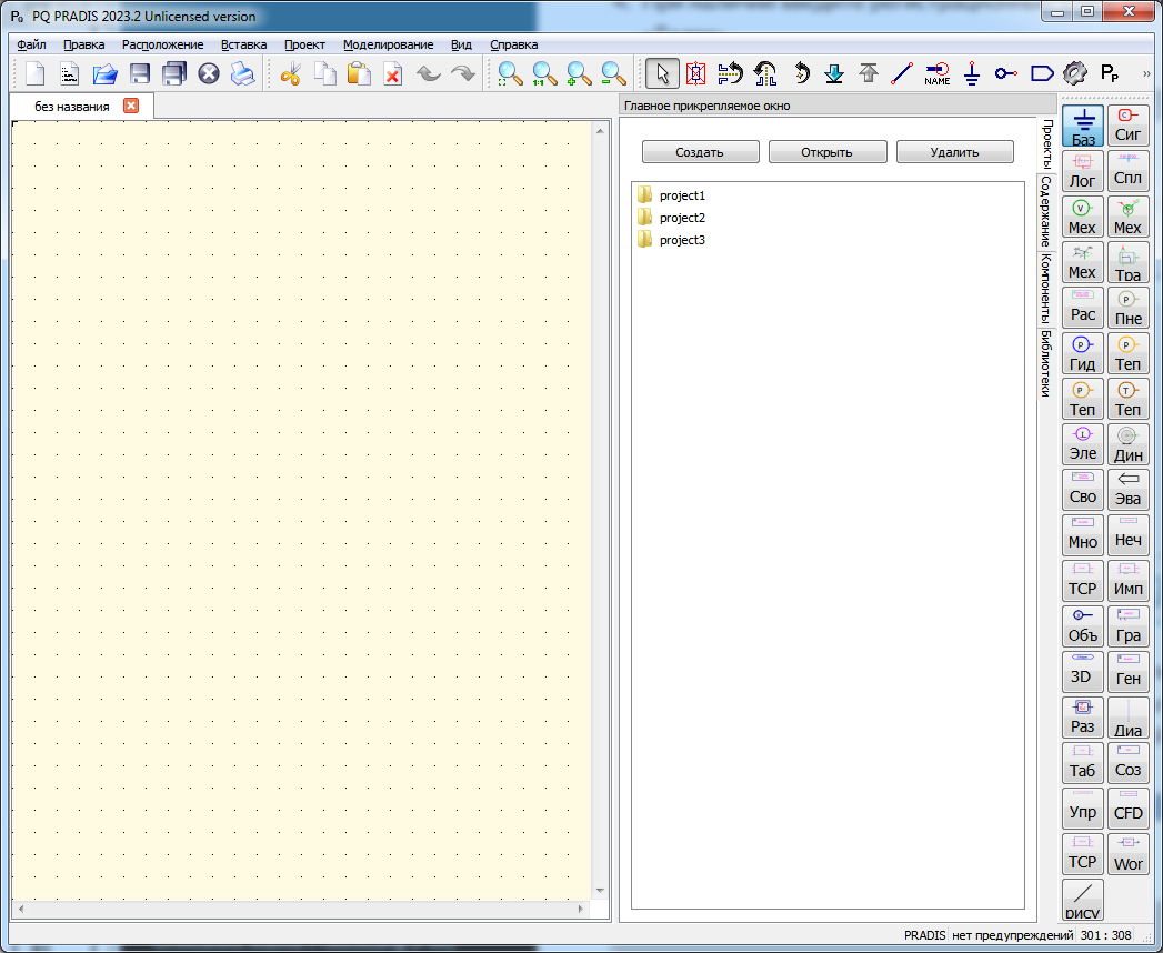 Препроцессор PRADIS — это интерактивная графическая среда, которая предназначена для формирования и подготовки расчетной модели. Его главная задача — преобразовать интуитивно понятное для человека графическое представление системы (схему) в строгий, машиночитаемый формат, понятный решателю.