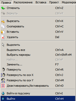 Вставляет обозначение вывода. Для отмены - нажать кнопку «Esc». |