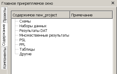 «Содержимое <имя проекта>» - отображает организационную систему для размещения файлов проекта <имя проекта>