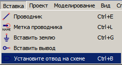 Вставка → Установите отвод на схеме |