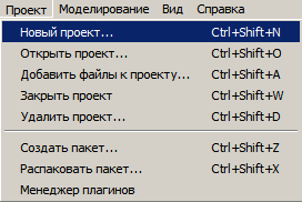 Создает новый проект. Аналогичные действия с проектами также предусмотрены в «Главном прикрепляемом окне» во вкладках «Проекты» и «Содержание». Отличие заключается в том, что при открытии для выбора проекта запускается стандартное диалоговое окно. |