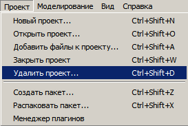 Проект → Удалить проект |