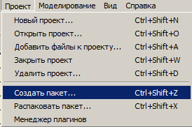 Проект → Создать пакет |