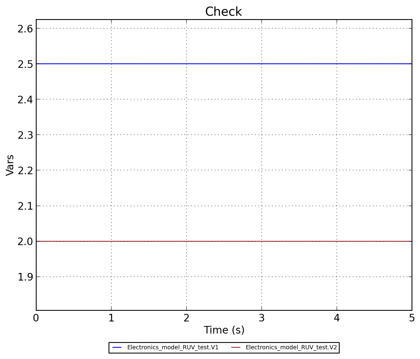 В данном тесте на управляющий порт подается постоянный сигнал: const = 2. Это означает, что сопротивление элемента принимает фиксированное значение, равное 2 Ом.