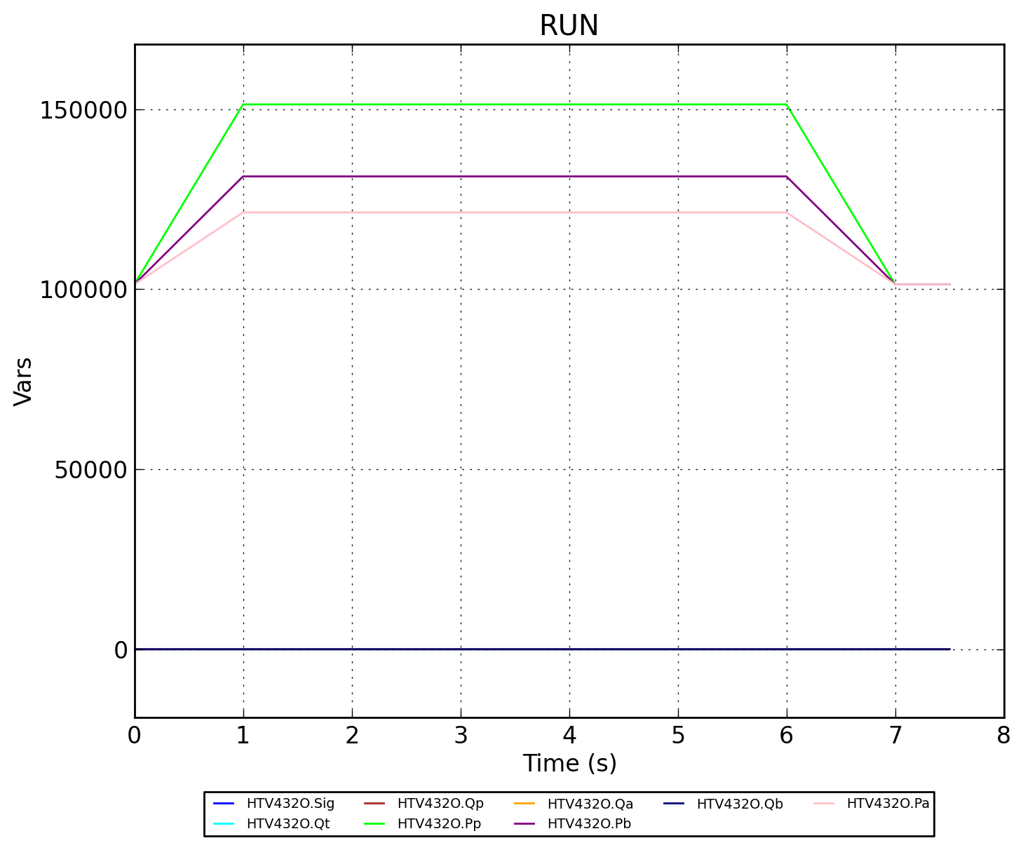Изменение режима работы клапана вызвано управляющим сигналом трапецевидной формы.