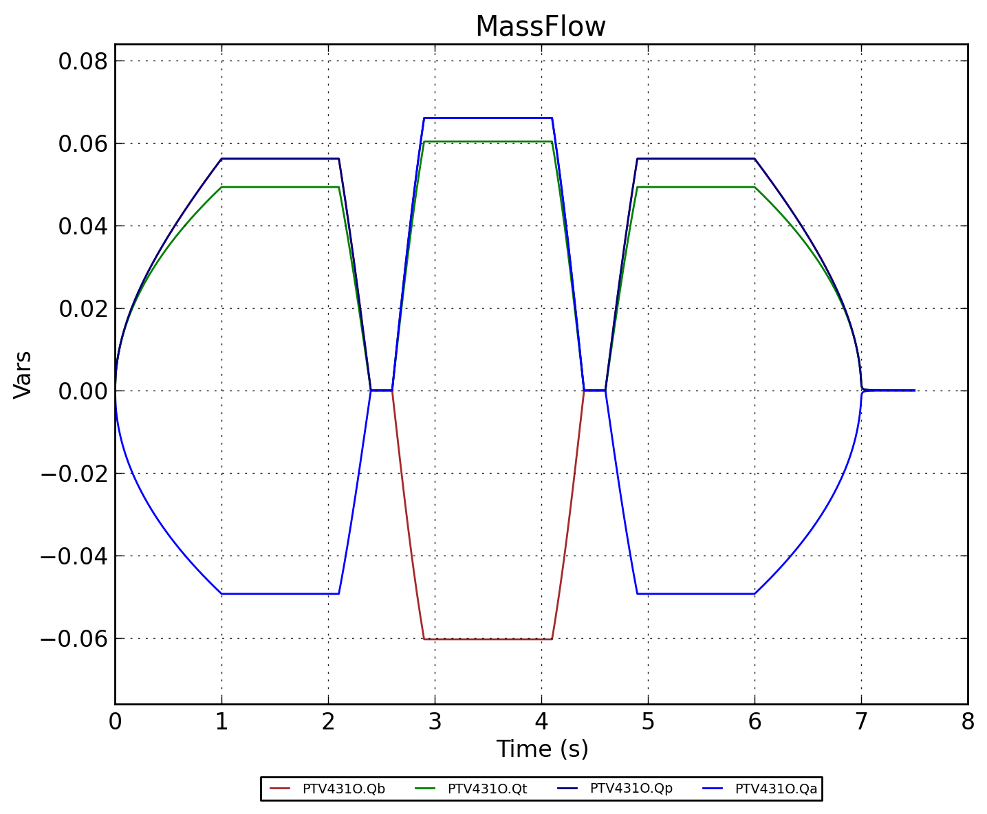 Изменение режима работы клапана вызвано управляющим сигналом трапецевидной формы.
