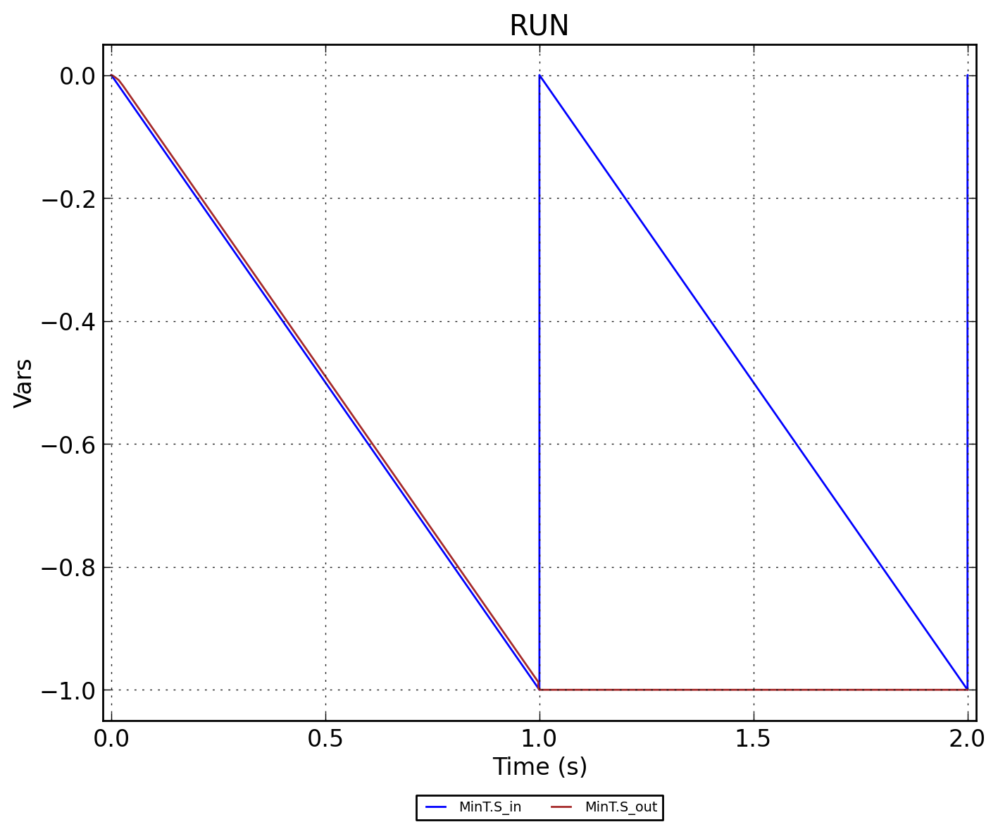Цикл из убывающий сигналов до значения равным -1. Компонент MinT сохраняет последнее минимальное значение.