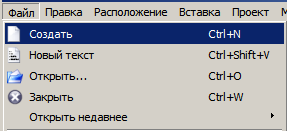Файл → Новый текст |