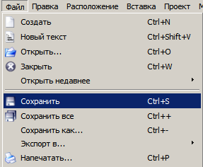 Файл → Сохранить |
