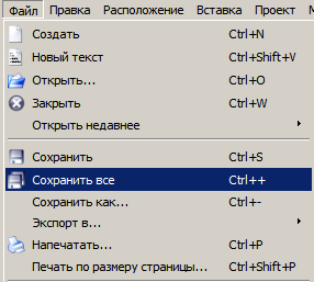 Файл → Сохранить все |