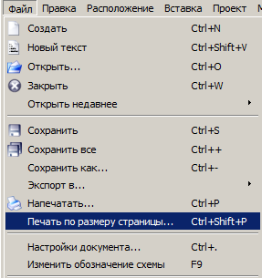 Файл → Печать по размеру страницы … |