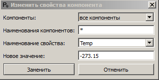 Параметры всех компонентов: Числовые значения, которые пользователь ввел в диалоговых окнах.