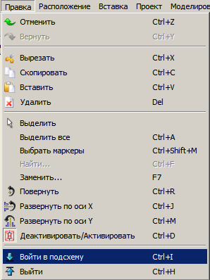 Вставляет обозначение вывода. Для отмены - нажать кнопку «Esc». |
