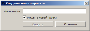 На вкладке находятся кнопки управления проектами («Создать», «Открыть», «Удалить») и список существующих проектов. При нажатии кнопки «Создать» открывается окно создания нового проекта: