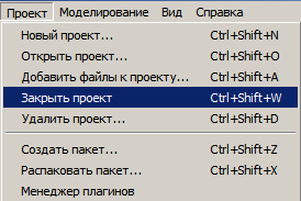 Проект → Закрыть проект |