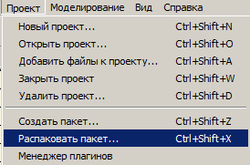 Проект → Распаковать пакет |