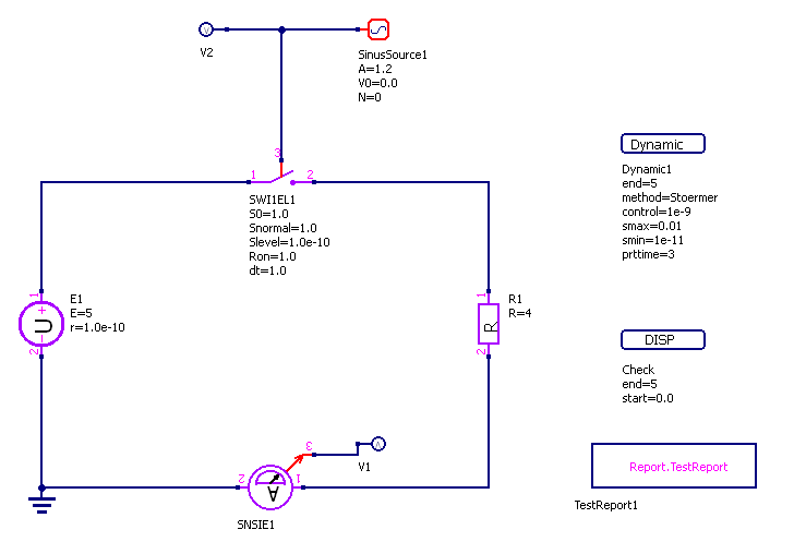 Переключатель коммутирует силовую цепь (источник E1 и нагрузку R1) в зависимости от сигнала на управляющем порте: