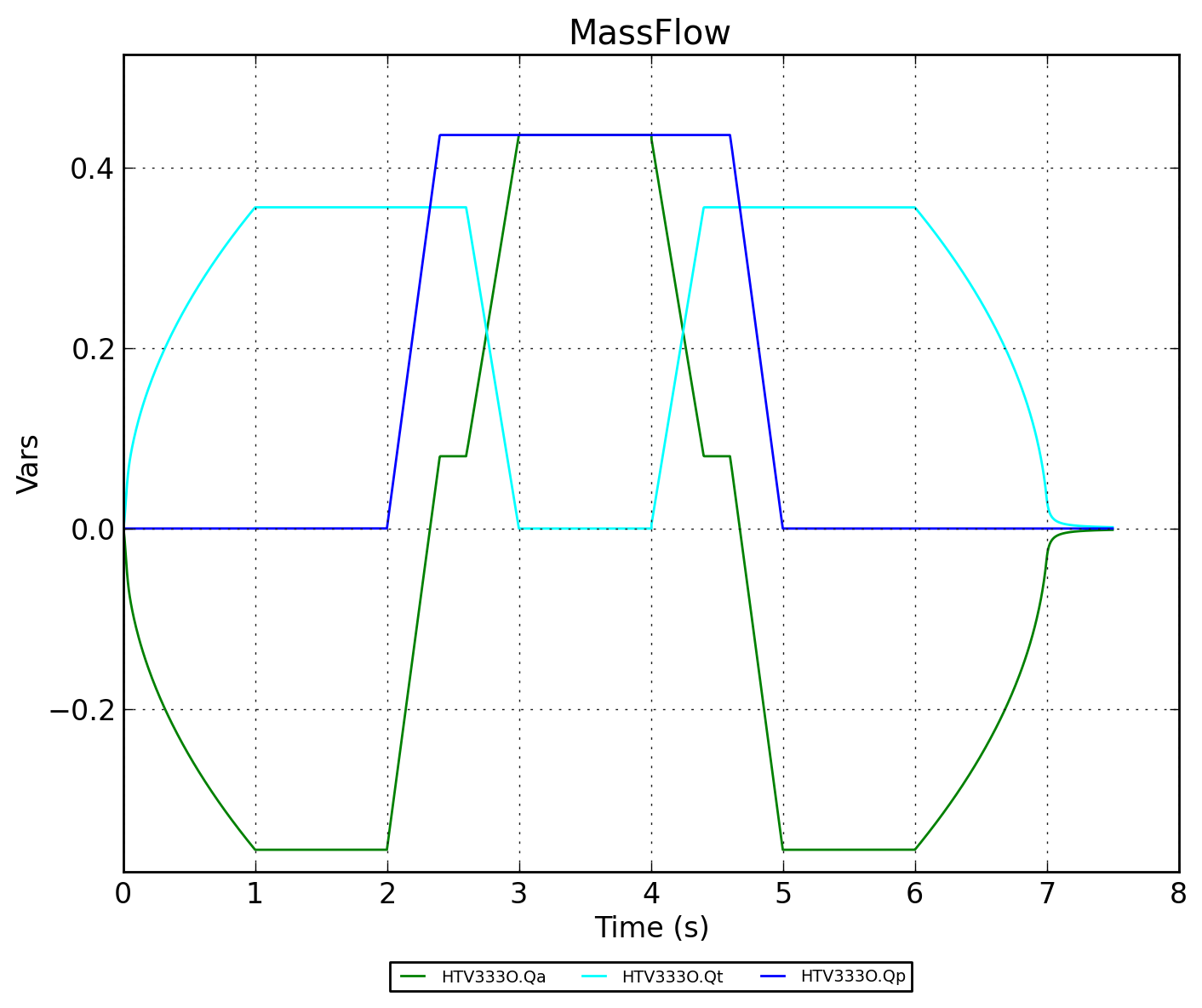 Изменение режима работы клапана вызвано управляющим сигналом трапецевидной формы.
