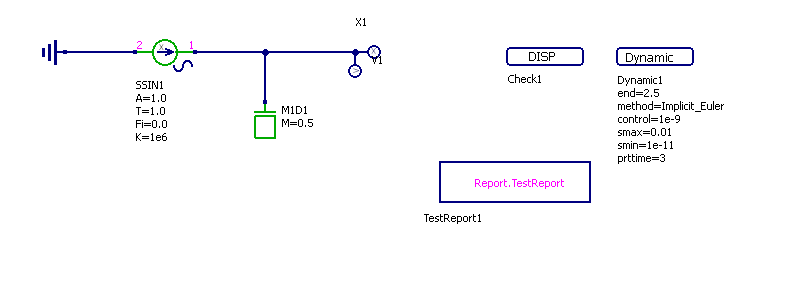Модель элемента с источником разности перемещений (синусоидальное воздействие)