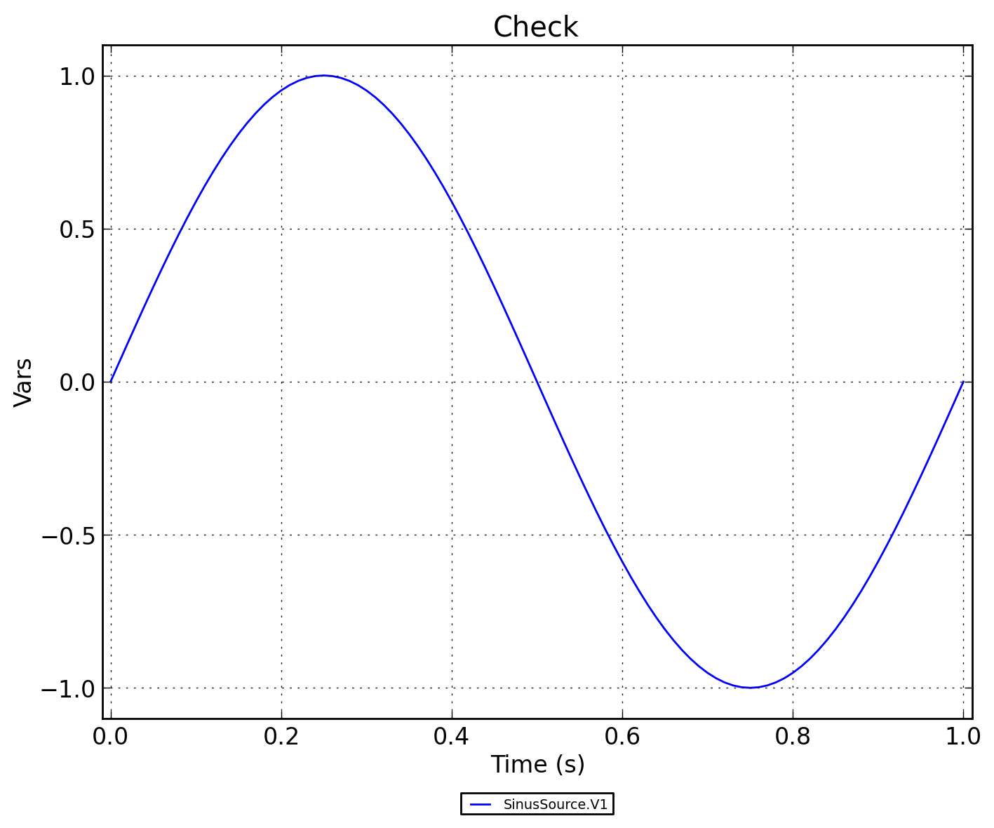 Пример применения Источника сигнала синусоидальной формы (SinusSource)